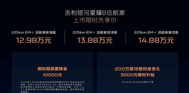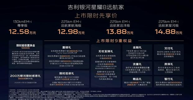 吉利银河星耀8远航家正式上市 智能化与续航能力显著升级