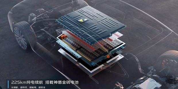 动力系统方面,新车继续采用1.5L发动机与电动机组成的插电混动系统,发动机最大功率82kW,电动机最大功率175kW,匹配单挡DHT变速箱。值得一提的是,新车换装了新一代神盾金砖电池,使其CLTC工况下的纯电续航里程提升至225公里,综合续航里程则达到1725公里。此外,车辆全系标配了支持时速160公里的全场景爆胎稳定控制系统。