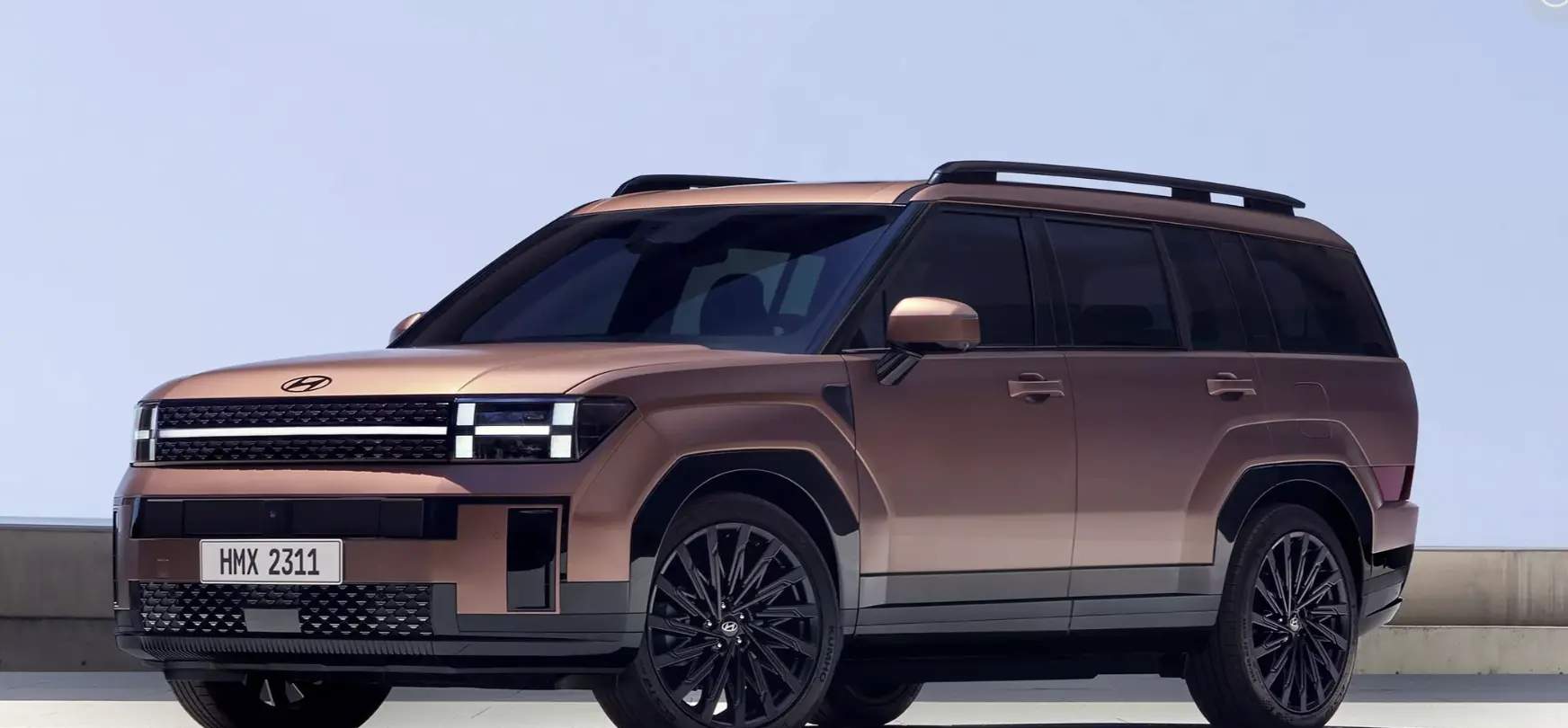 同时,新一代胜达设计了宽大的轮眉,并搭配21英寸轮辋。A柱采用黑色处理,呈现出悬浮车顶的风格,车顶还配备有行李架。车尾造型平整,尾灯位置较低,内部同样采用H型设计。尾部标有“2.5T”标识,显示动力信息,并装备了单边共单出式排气系统。虽然车身尺寸尚未公布,但官方表示将增加轴距。