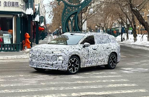 此次发布中备受关注的还包括一汽-大众ID.AURA序列的首款SUV。该车定位中型纯电SUV,基于新一代CEA电子电气架构研发,并成为大众品牌首款搭载激光雷达的电动车型。从已披露的设计细节来看,车辆前脸采用封闭式面板与分体式大灯设计,上方LED灯带预计呈贯穿式布局,下方灯组则为方形造型。车顶装有激光雷达,外后视镜嵌有智能驾驶指示灯,同时配备半隐藏式门把手、贯穿式尾灯以及“Y型”双色轮圈。