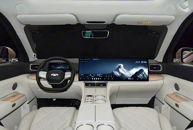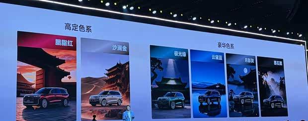 内饰采用木质纹理与菱形皮质包裹,配备256色音乐律动氛围灯及3种香氛主题。中控搭载30英寸6K寰宇屏,支持多窗口分屏及CarPlay等互联功能。全系标配AI语音助手与哨兵模式,搭载伯牙之音豪华音响系统,峰值功放达2880W。座椅采用13层5D海绵材质,三排均配备电动调节与Type-C接口,后备厢扩展容积达798L。此外还配备9.2L冷暖冰箱与17.3英寸后舱娱乐屏。