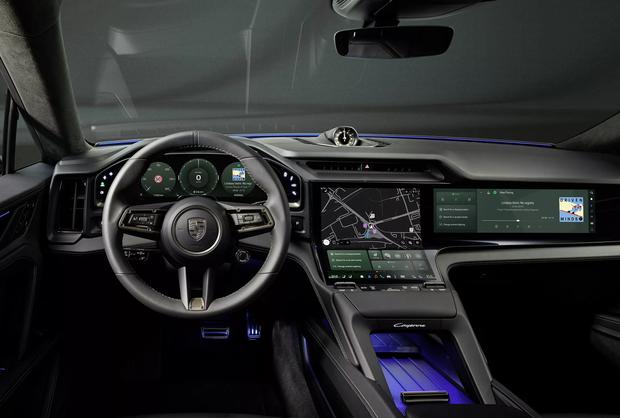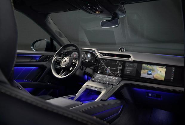 内饰最引人注目的是中控台配备的12.25英寸曲面OLED显示屏,下方保留了大量实体按键便于操作,上方则布置了空调出风口和时钟。新车还将搭载14.25英寸OLED数字仪表盘,并提供87英寸AR-HUD抬头显示和14.9英寸副驾驶娱乐屏作为选装配置。据悉,这套全新内饰设计理念将应用于保时捷后续推出的新车型。