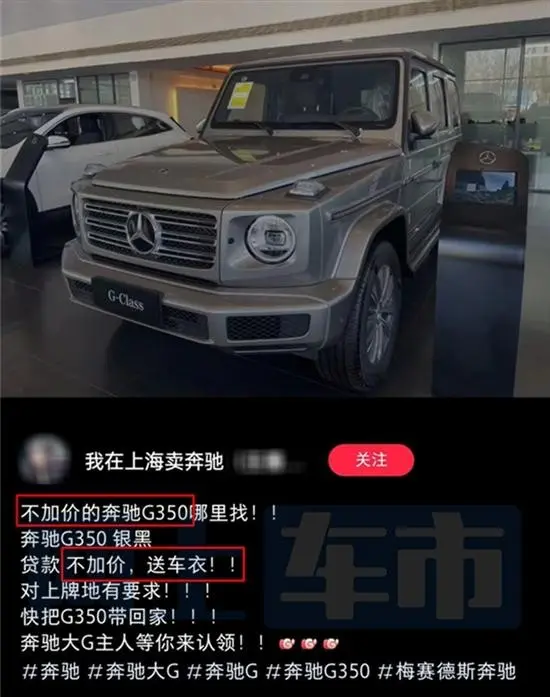 近段时间,一则短视频内容引发热议,内容显示,某奔驰4S店透露,G 350、G 500和AMG G 63目前已经停止加价;且奔驰G350还另送车衣;满配...